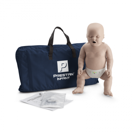 Een handige draagtas met 4 realistisch ogende Prestan baby reanimatiepoppen voor het oefenen van een reanimatie bij baby's. De Prestan reanimatiepop Baby bevat een uniek feedbacksysteem dat de cursist feedback geeft over de compressiefrequentie en -diepte van de hartmassage.